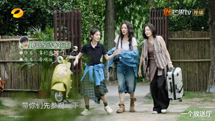 张艺兴在做饭,让张子枫带客人参观蘑菇屋。